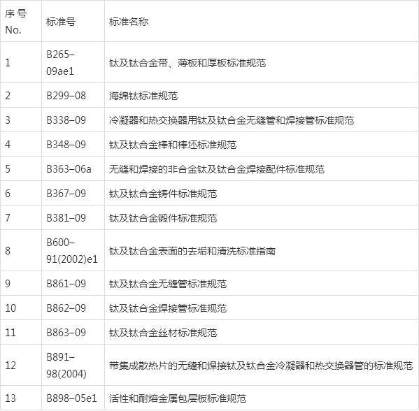 ASME是美国机械工程师协会(The American Society ofMechanical Engineers)制订的建造规范及其材料标准。钛类标准主要在第II卷(材料篇)的B类—非铁基材料中,这些标准全部引用了ASTM相应的材料标准和材料试验标准。