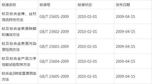 另外,2009年4月有5项关于钛及钛合金方法类的GB发布,已于2010年2月1日实施(见表4)。