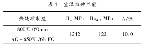 2.4分析结果验证试样经800℃/60min AC +650℃/6h FC热处理后的室温拉伸性能﹐见表4.