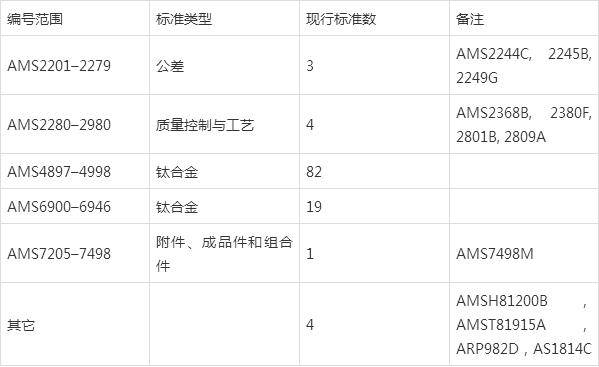 表2 AMS钛类标准的分布